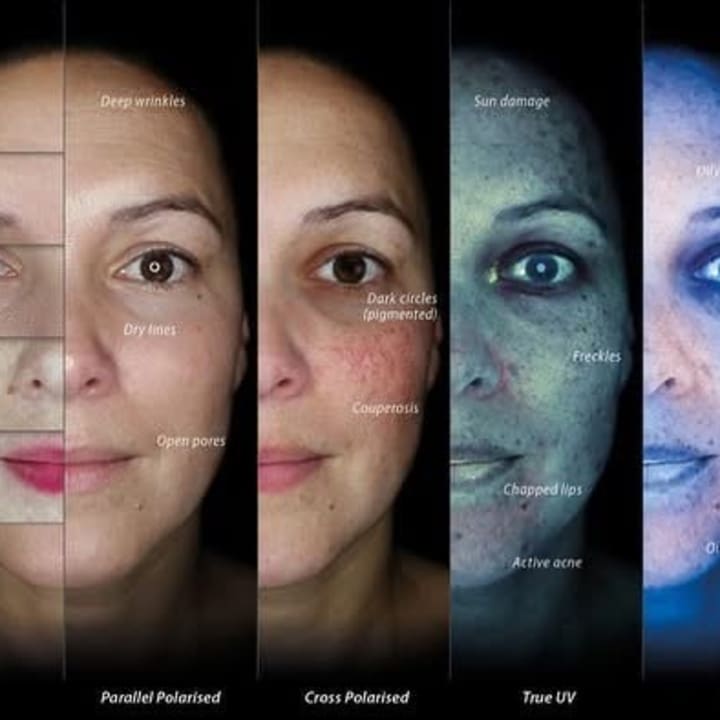 Hudscanning viser pigmentskader, solskader, poretilstoppninger, rynkedybde, fuktighetnivå, inflamasjoner og karsprengninger.